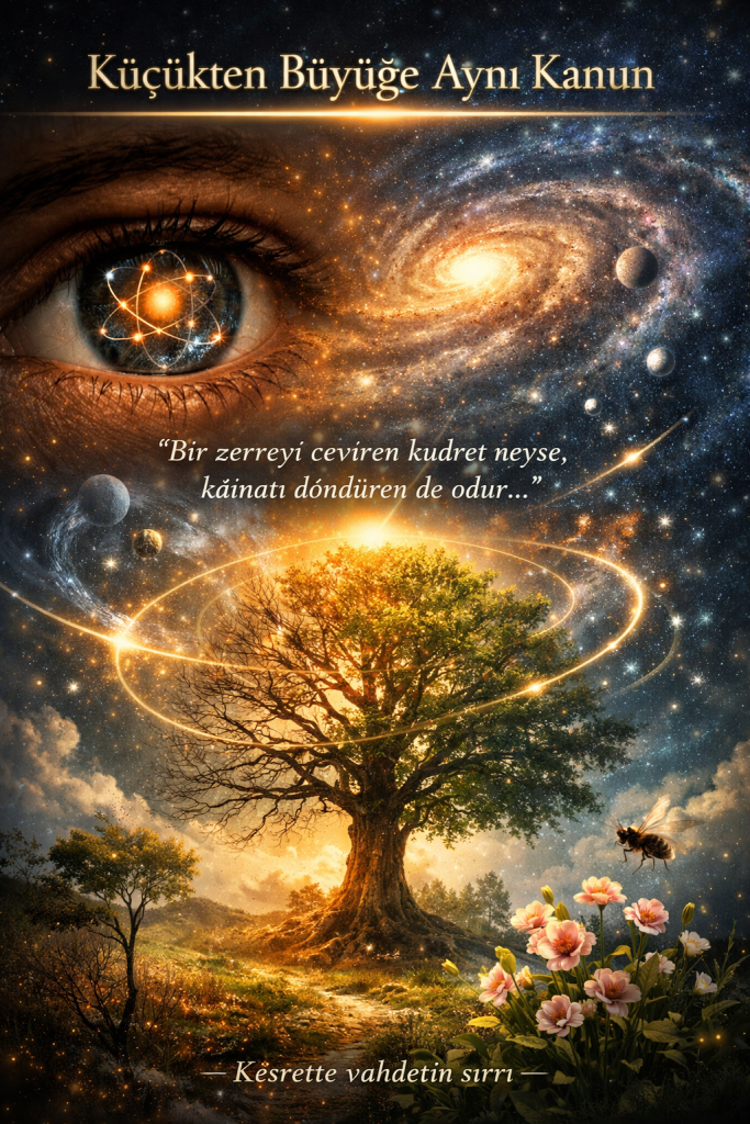 Demek ki: Zerreden kâinata kadar işleyen tek bir ilahî düzen var.
